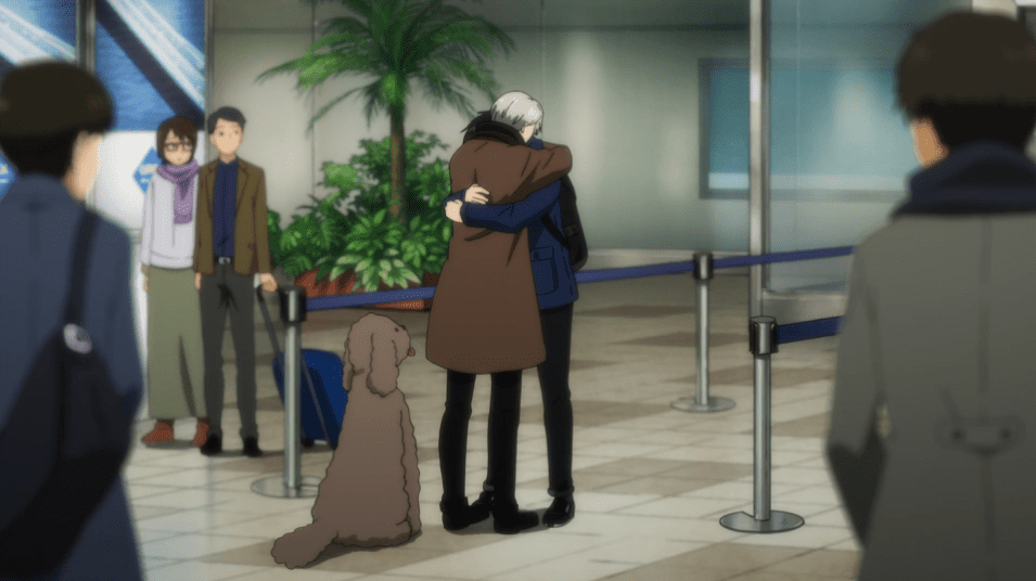By the time of his free performance in the Rostelecom Cup, the round that confirms the six skaters to advance to the Grand Prix Final, Yuri has begun to let go of his coach as his crutch. But when they are reunited later, the yearning he’s held back is released in a plea for Victor to stay by his side.