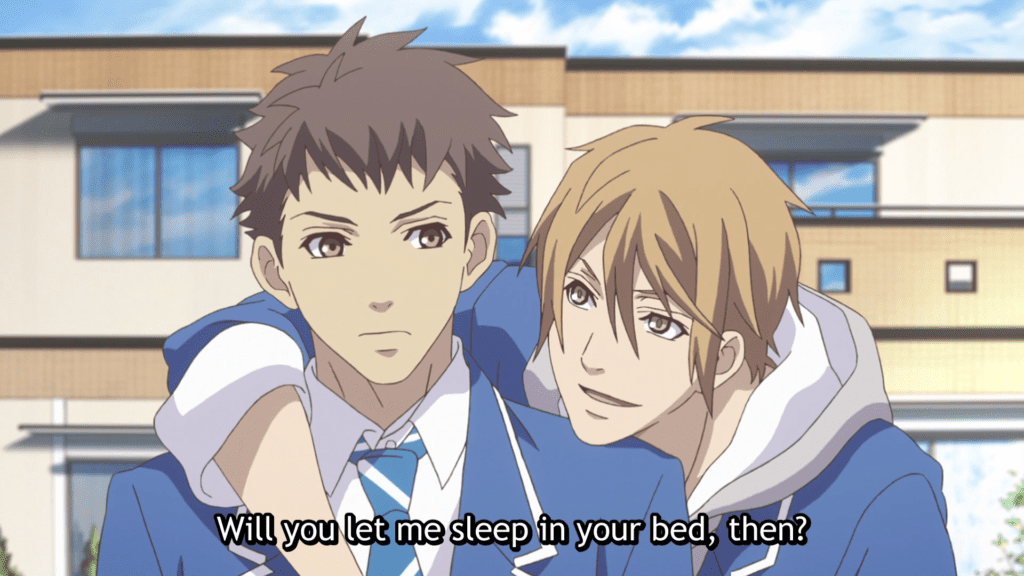 - One of the guys always sleeps over at his best friend’s house, which at least has the possibility of leading to a layered character arc or backstory.