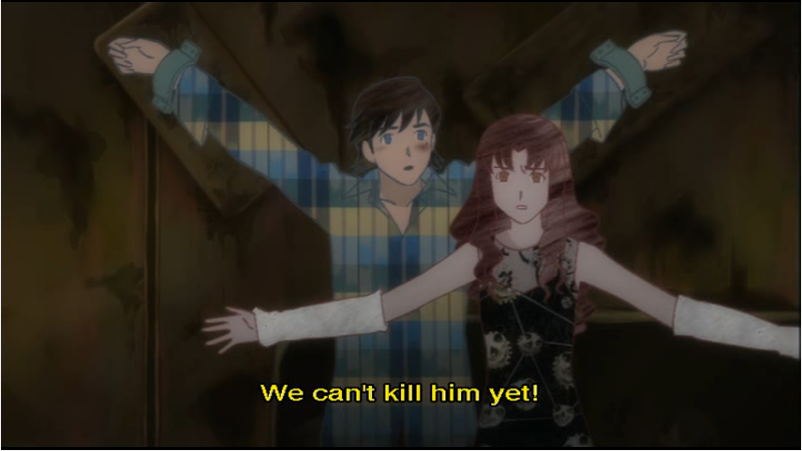 Peppo protecting Albert. subtitle: We can't kill him yet!