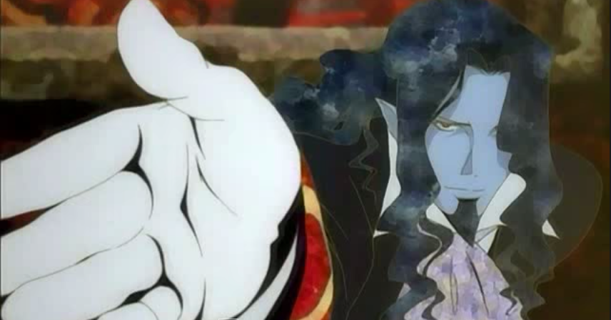 a blue-skinned aristocrat reaching his gloved hand toward the camera to shake