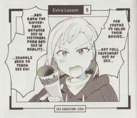 one panel comic. For Youths to value their bodies, get full enjoyment out of sex, and know the difference between sex in fictional form and sex in reality, schools need to teach sex ed!