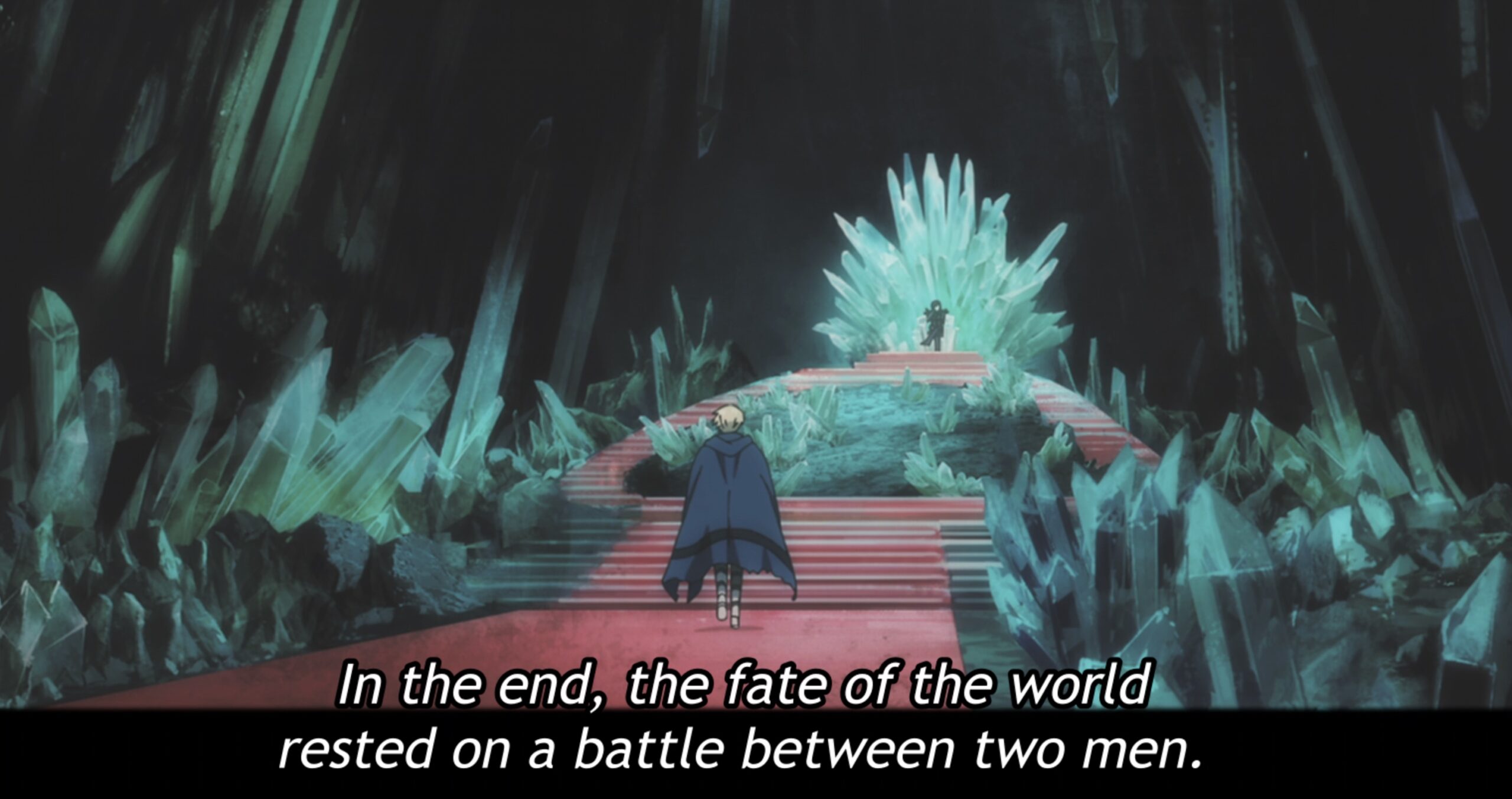 narrator saying two men have the fate of the world in their hands.