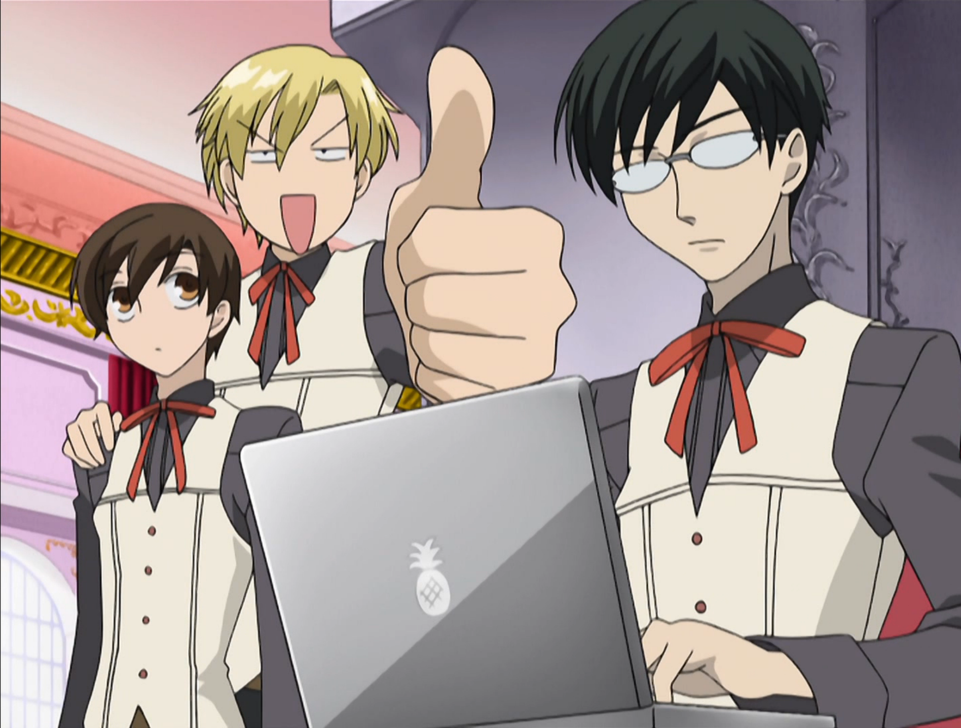 Tamaki giving a big thumbs up to an unimpressed Kyoya
