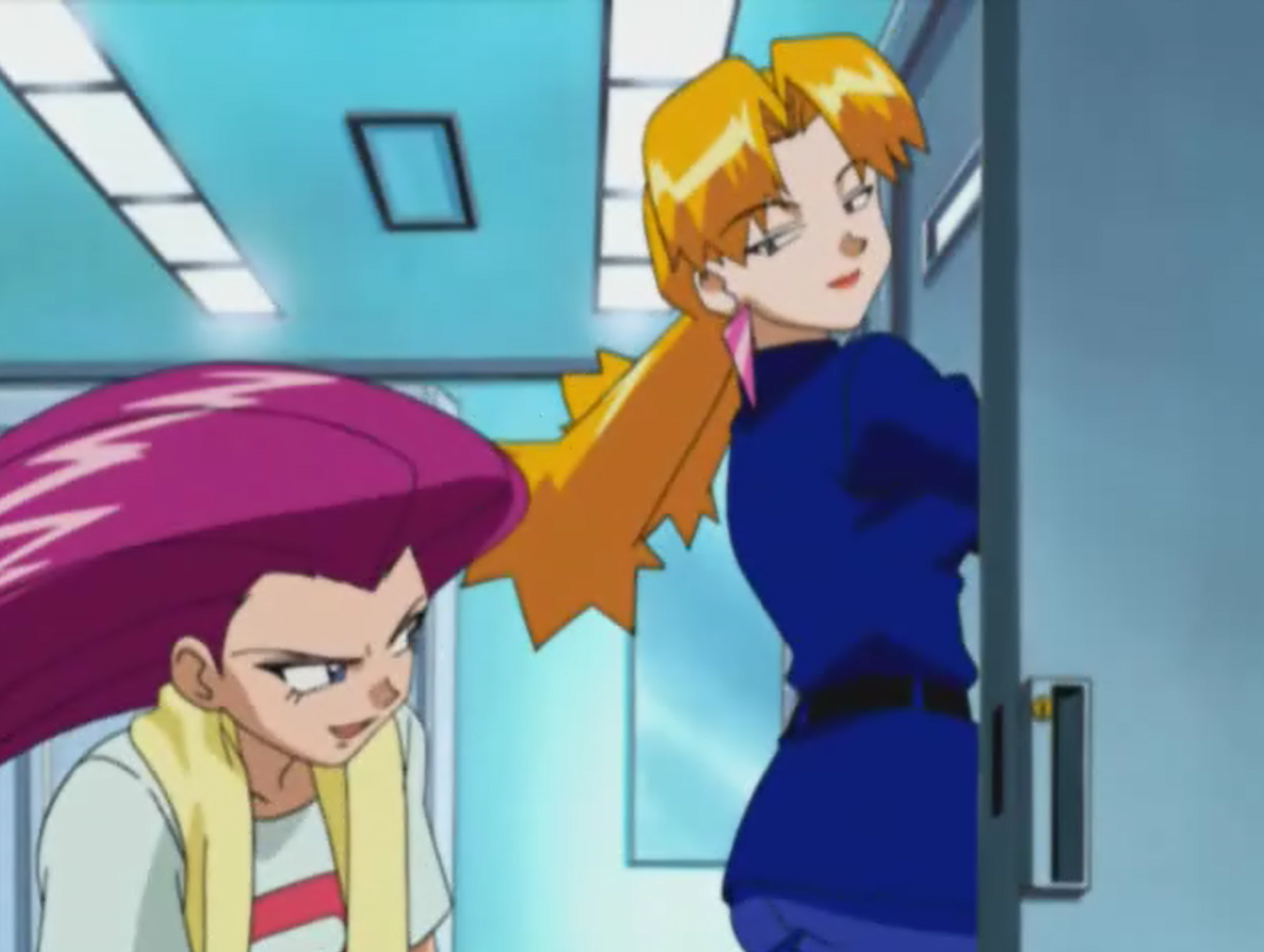 Cassidy stands at a locker, looking smugly over her shoulder at Jessie, who glares back.