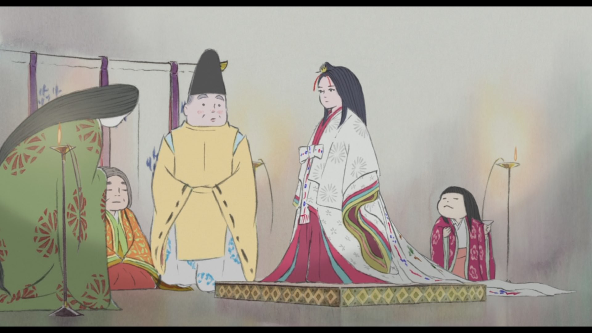 Kaguya standing at attention for a ceremony with her family, looking unsatisfied