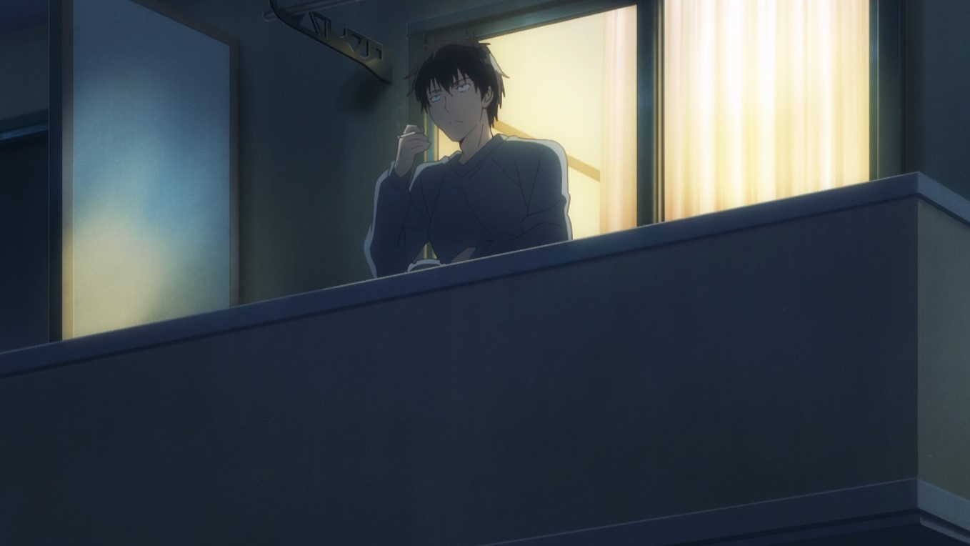 Yoshida steps out onto his balcony for a late night smoke and a bit of contemplation.