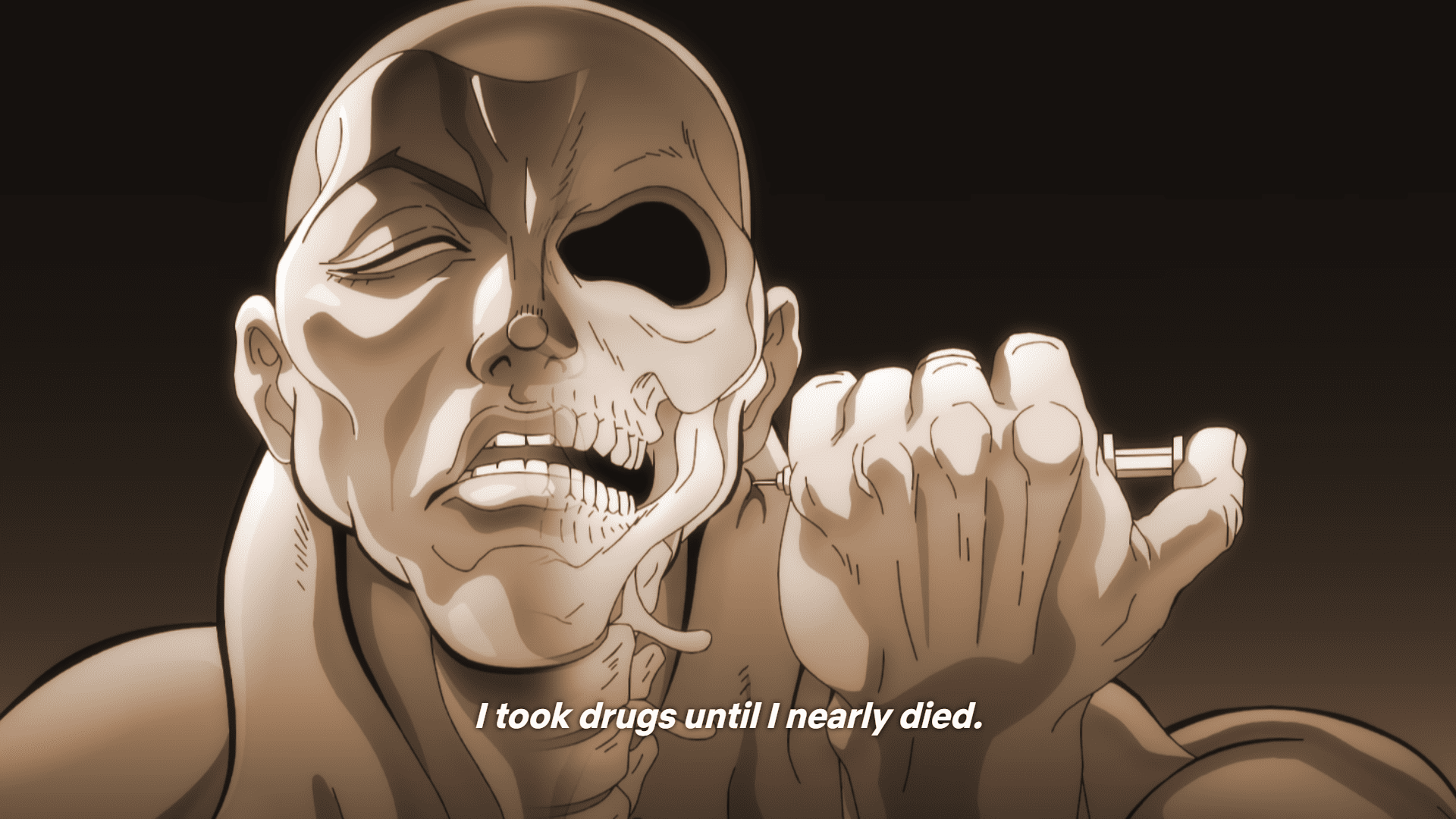 Jack injecting a syringe into his neck; half his face looks into his skeleton