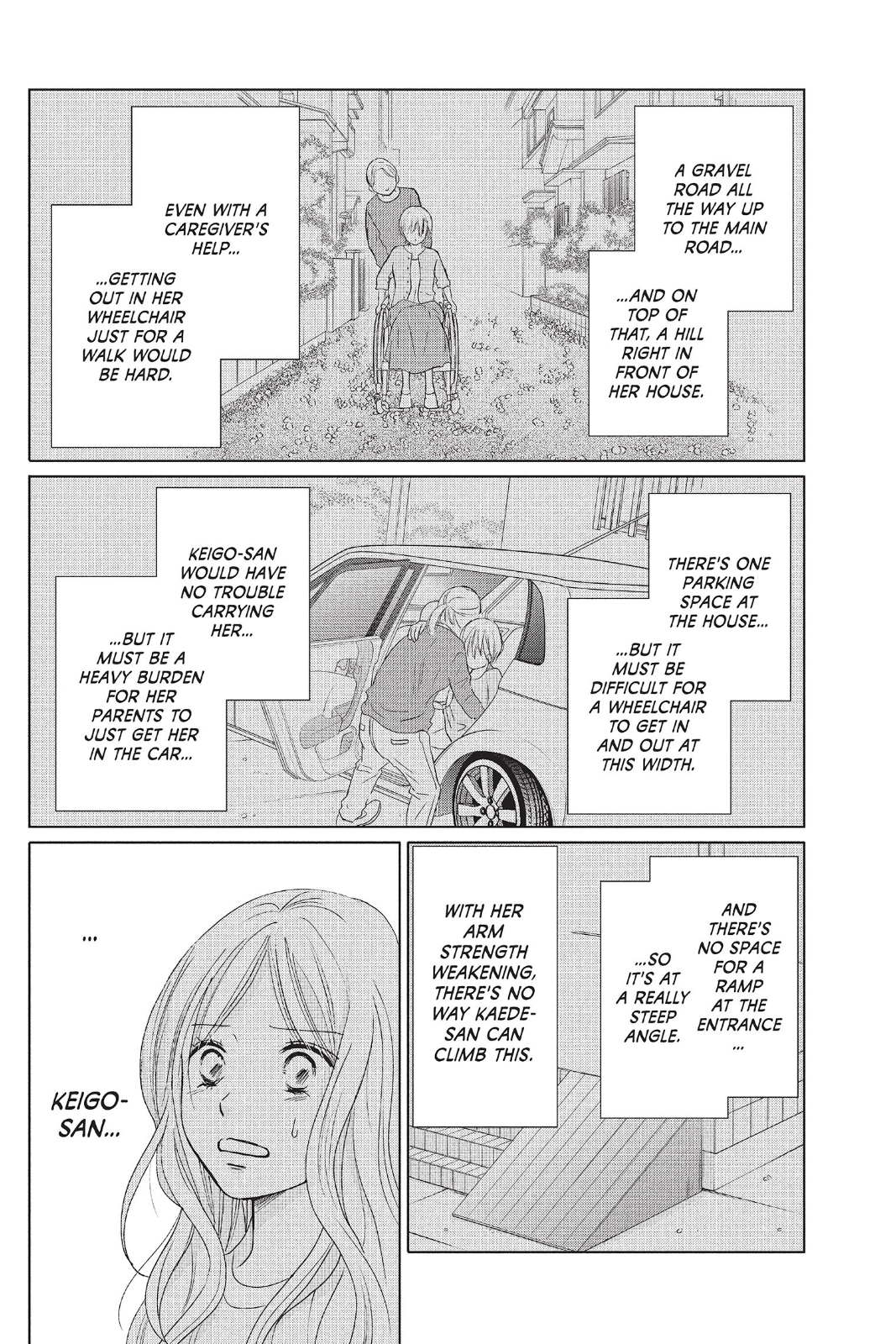 Tsugumi noting a steep climb is impossible in terms of accessibility for the couple living there