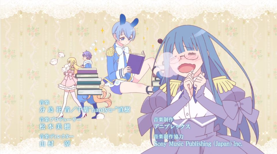 It’s a very gentle show, rarely rousing itself beyond a deadpan comment from Beelzebub or a blushing tsundere outburst from Mullin; mostly, its heart is firmly in rom-com land. The opening theme introduces three couples blushing and staring at one another across heart-and-macaron backgrounds: Beelzebub and Mullin, a large man and a very short Lolita-fashion woman, and a cheerful womanizer and hyper-competent woman no doubt doomed to clean up after him. These types of shows generally cycle between subplots in order to give the viewer a variety of relationship dynamics and keep the format light.