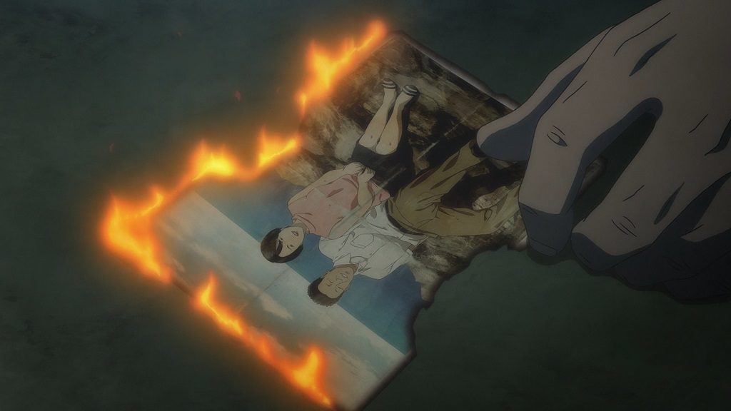 But, to be equally clear, that’s not what this premiere is doing. Instead it’s just making the people around Ichiro a bunch of asshole stereotypes. Ungrateful children? Check. Naggy wife? Check. Damned entitled millennials thinking they can do whatever they want? Double-check. The only humans we’re supposed to sympathize with are two middle-aged men: Ichiro, of course, and a homeless guy who plans to reunite with his estranged wife, IF ONLY THESE EVIL TEENAGERS WOULD STOP TRYING TO SET HIM ON FIRE!