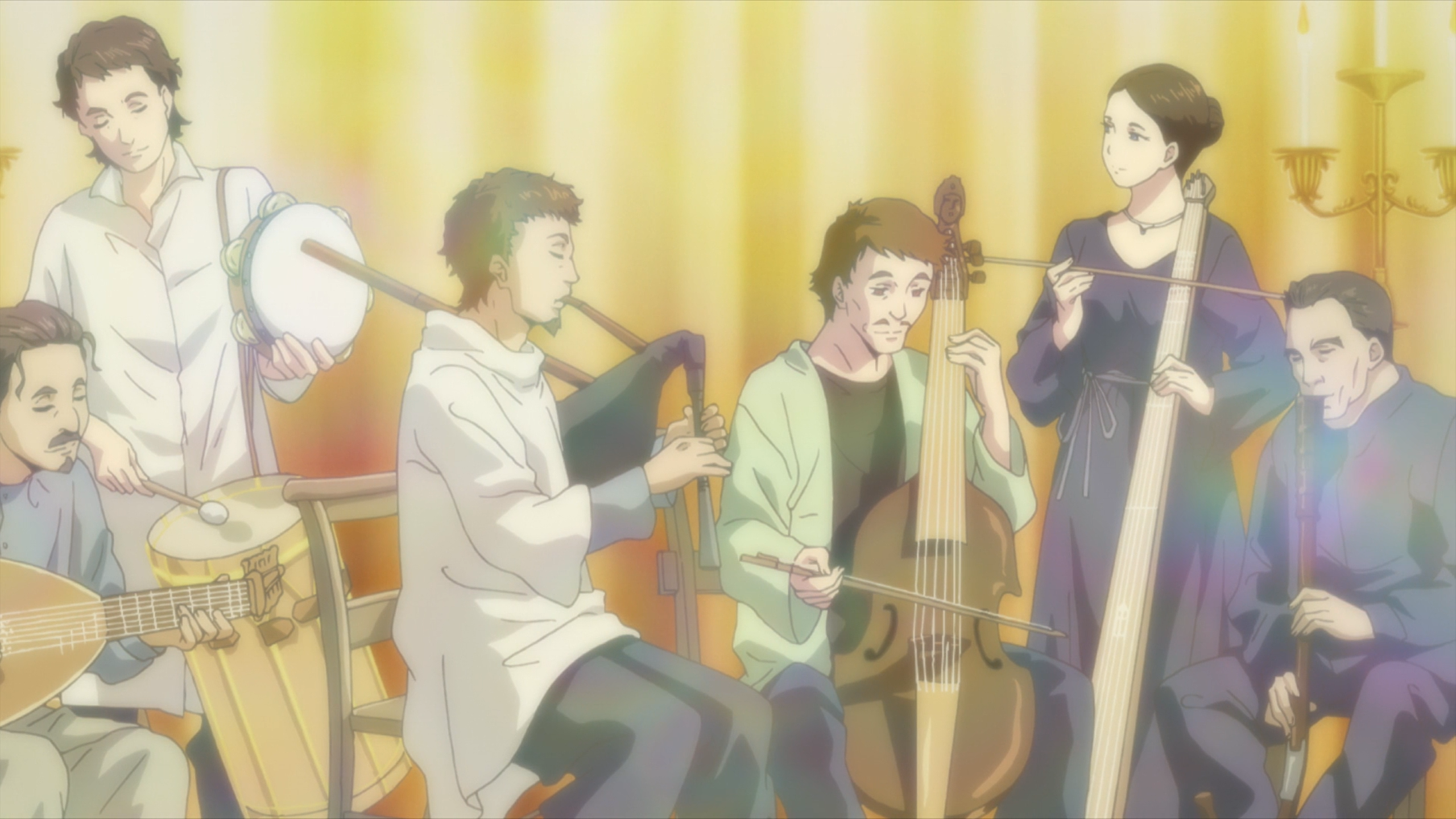 The animation is serviceable and the art design pleasant, featuring rolling hills, crumbling stone castles, and pretty boys and girls alike. Despite being marketed as a (presumably cishet) male-targeted series, the character designs seem to skew towards a more neutral viewership (Alfred and his flowing locks sure as hell ain’t here to appeal to straight dudes, I can tell you that).
