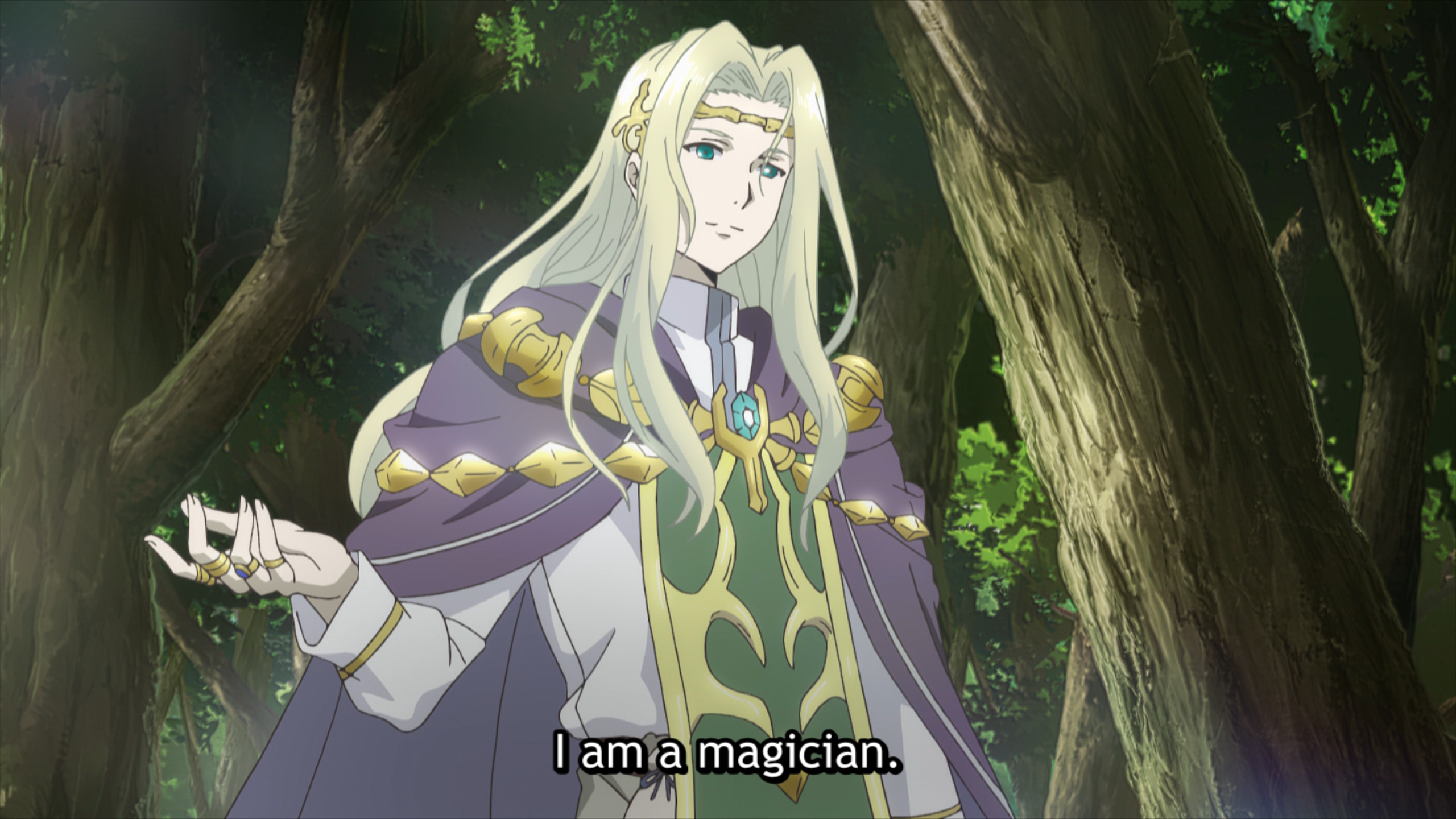 Despite a hilariously out-of-place EPIC ROCK OPERA opening theme, this first episode is more of a historical fantasy slice-of-life than a grand magic-slinging adventure. The series even begins with the protagonist using his magic to dramatically(!) level a field… so the local farmers can till the land.