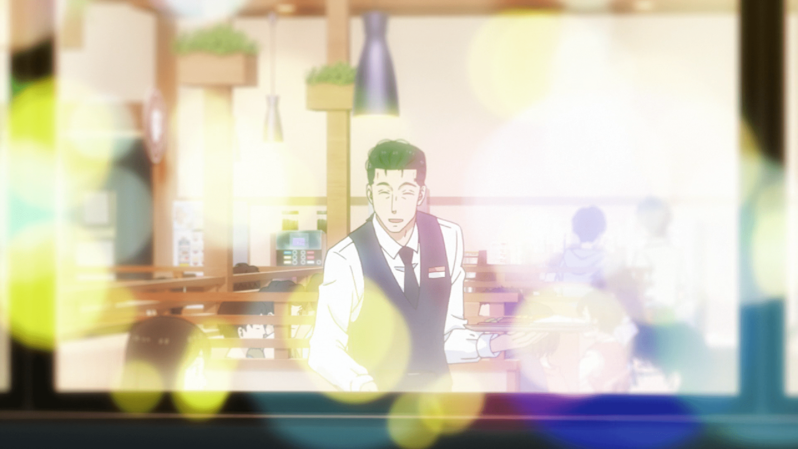 This is where After the Rain trips up, because Kondo doesn’t get the same idyllic treatment. In these first three episodes, he gets exactly one shot in The Glow: it’s from a distance, seen through a restaurant window. One instance compared to constant, countless shots of Akira.
