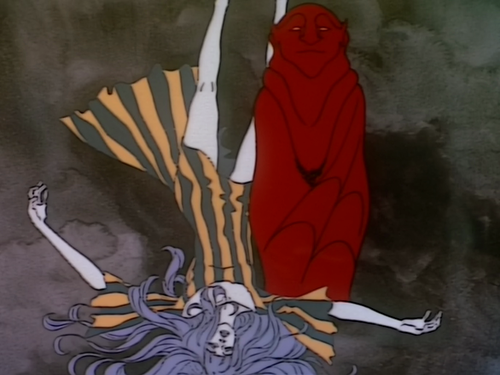 Belladonna of Sadness was the third film in the Animerama trilogy, a group of movies made by Osamu Tezuka’s studio Mushi Pro. It is the only one neither written nor directed by Tezuka himself. Like the entire series (the others being A Thousand and One Nights and Cleopatra), Belladonna was conceived as an adult or “pink” film.