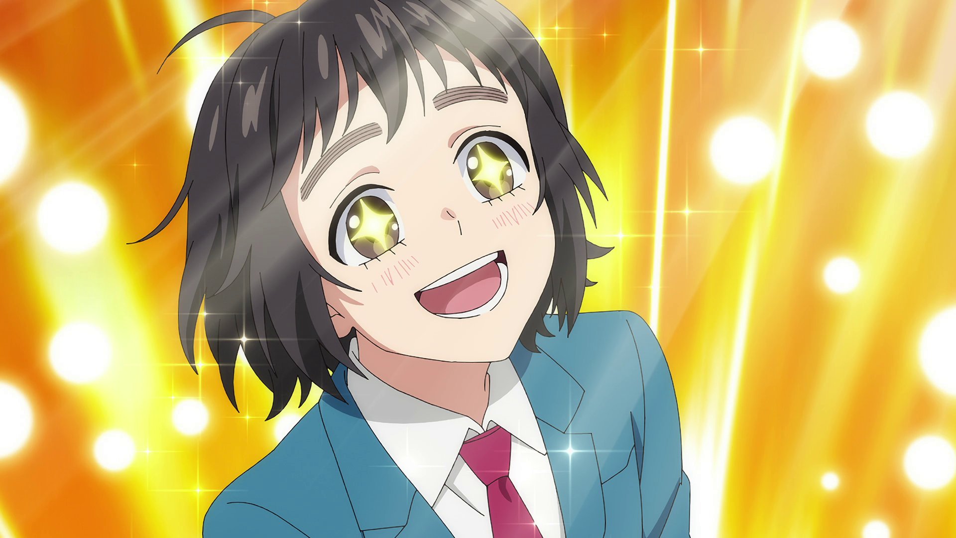 Hiyori from Heroines Run the Show with sparkle-filled eyes